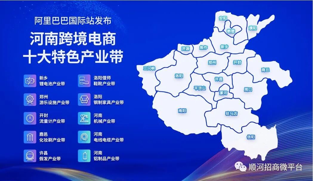 5月10日,在郑州举行的第五届全球跨境电子商务大会期间,阿里巴巴国际站公布在该平台上的“河南十大跨境电商特色产业带”。这其中,不仅有本省百姓熟知的装备机械制造、铝制品加工、电线电缆和许昌假发等传统强势产业,还有鹿邑化妆刷、偃师鞋靴、新乡锂电池、开封流量计、郑州游乐装备等加速成长的新型产业带。