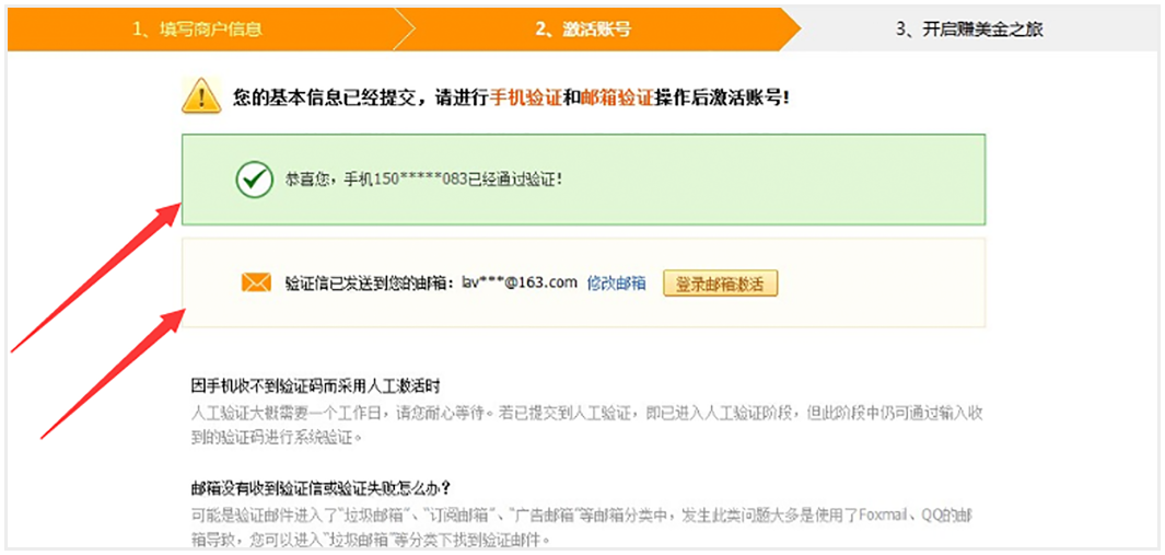 成功提交注册信息后,根据系统提示进行手机+邮箱认证,请根据指引完成相应认证。