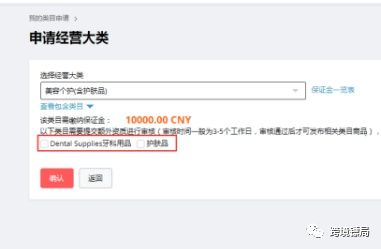第一种场景(推荐):A申请美容个护(含护肤品)大类,不对牙科用品和护肤品进行勾选、提交。那么确认后,可立即冻结保证金,冻结完成,美容个护大类除牙科用品和护肤品类目以外的其他商品发布类目权限均立即开通。A在经营中评估自己还是要经营牙科用品和护肤品类目的,且资料齐全,A可在经营过程中随时操作单独申请这两个类目的经营权限,申请过程和之前一致,且无需重复冻结保证金,审核成功后即可经营。
