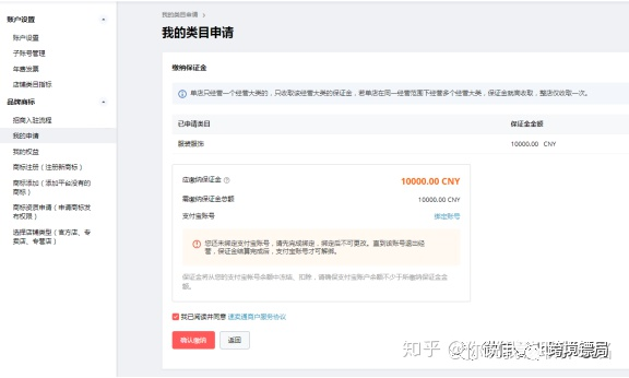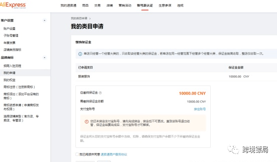 例如:A选择第10经营范围,同时申请开通3c数码和手机类目。3c数码对应保证金金额1万,手机类目对应保证金3万,我们只冻结1笔3万的保证金。)