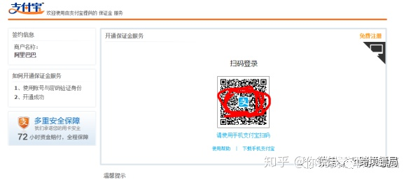 4、冻结保证金,确定申请类目及保证金金额,点击绑定账号,页面会新弹出支付宝页面请您登陆绑定。(请一定注意不要设置浏览器拦截,chrome浏览器在地址栏的右侧会跳出一个小logo,注意点击并撤销拦截)